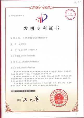 橡胶同步带发明专利证书 |